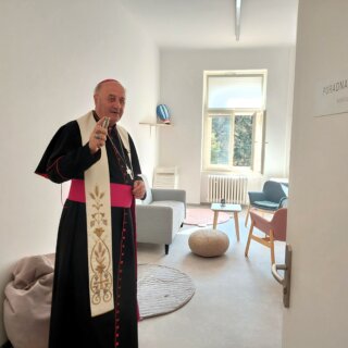 Otec arcibiskup se poté zastavil v každé kanceláři, konzultovně, učebně i ve cvičné kuchyni, která je součástí Komunitního centra. Žehnal prostory a promlouval s pracovníky Charity, kteří na setkání s ním v místě svého působiště čekali. V jedné z učeben Komunitního centra nahlédl do právě probíhající tvořivé dílny pro děti.